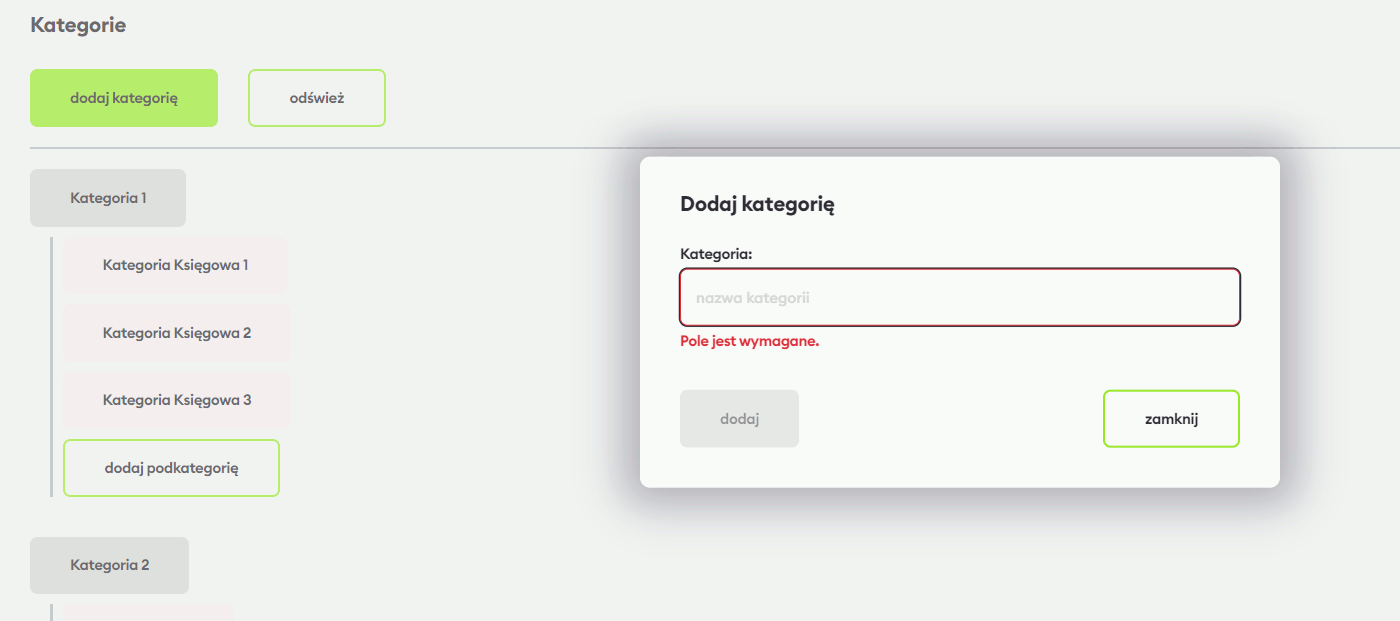 Kliknij Dodaj kategorię. Pokaże się okienko tworzenia kategorii.