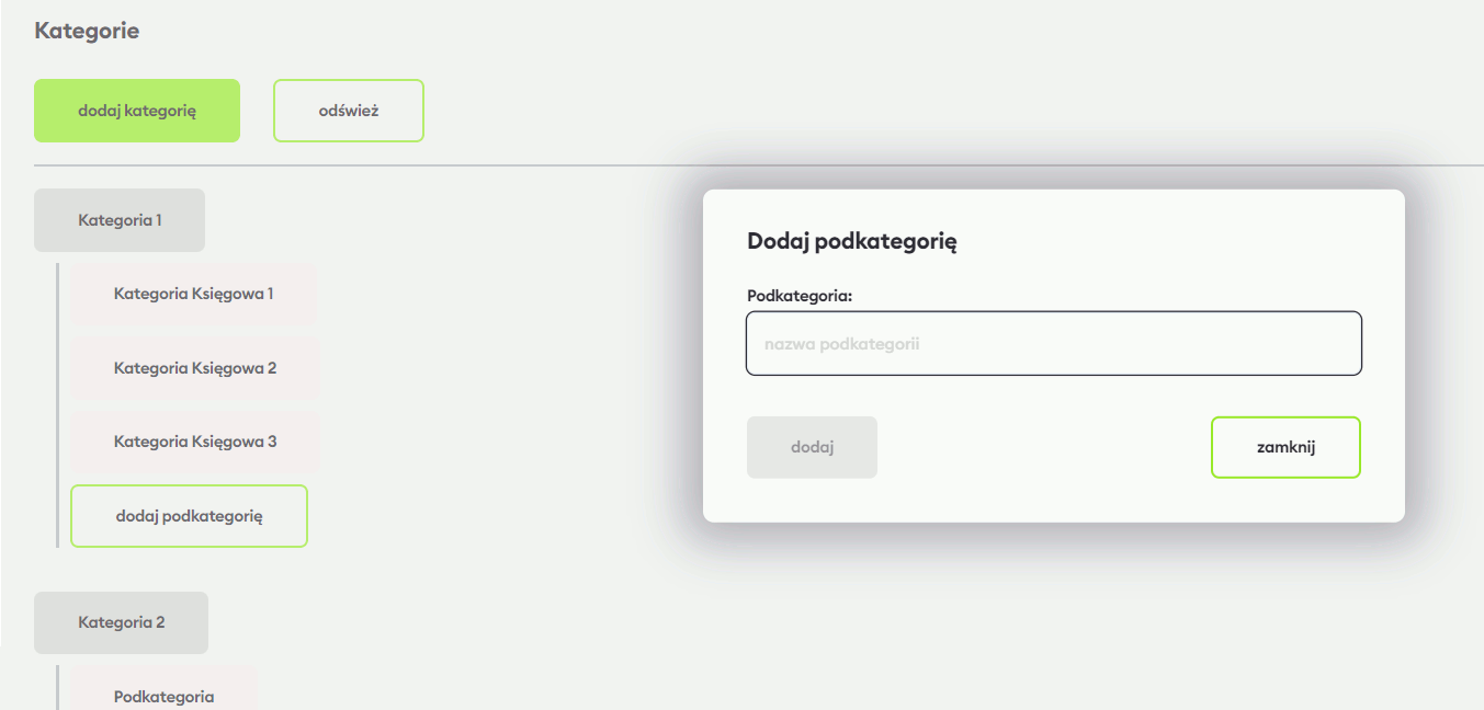 Dodawanie podkategorii księgowej