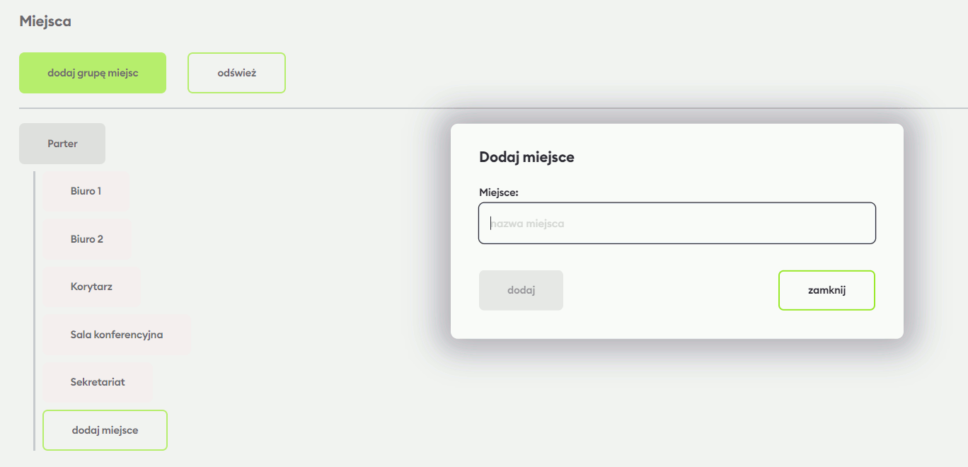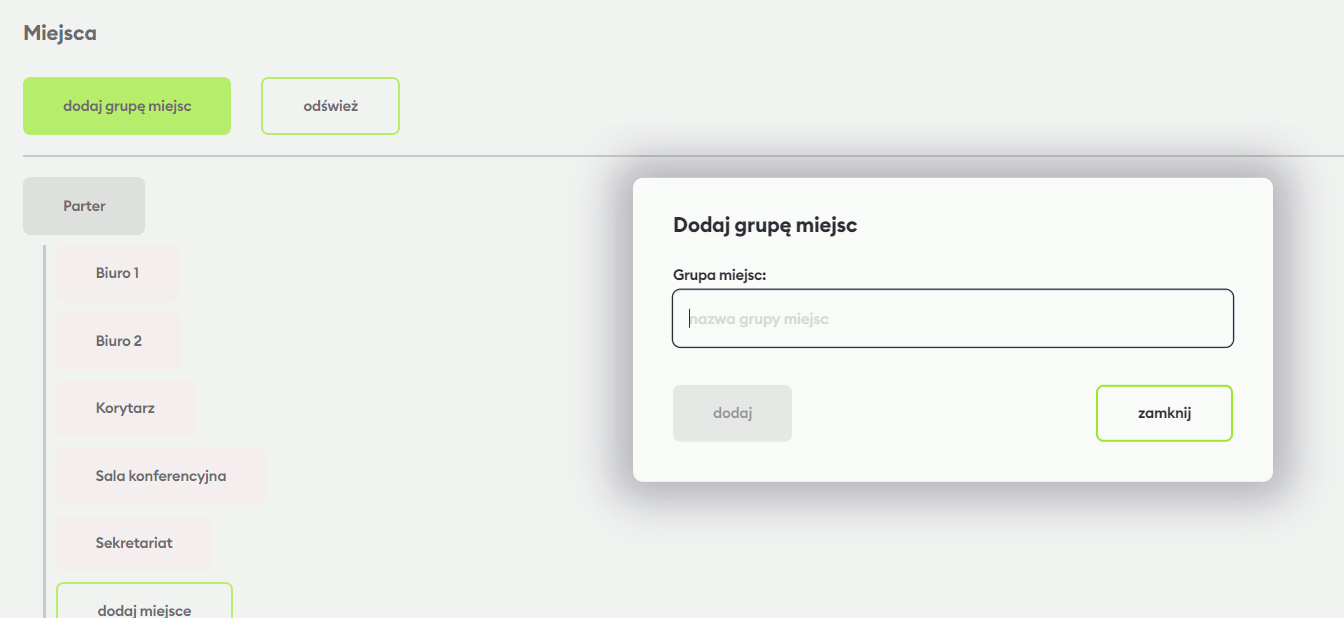 Aby je utworzyć, w module Konfiguracja wybierz Miejsca i kliknij Dodaj grupę miejsc.