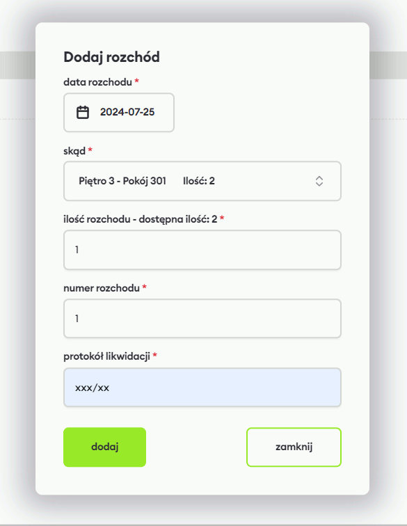 Dodawanie rozchodu